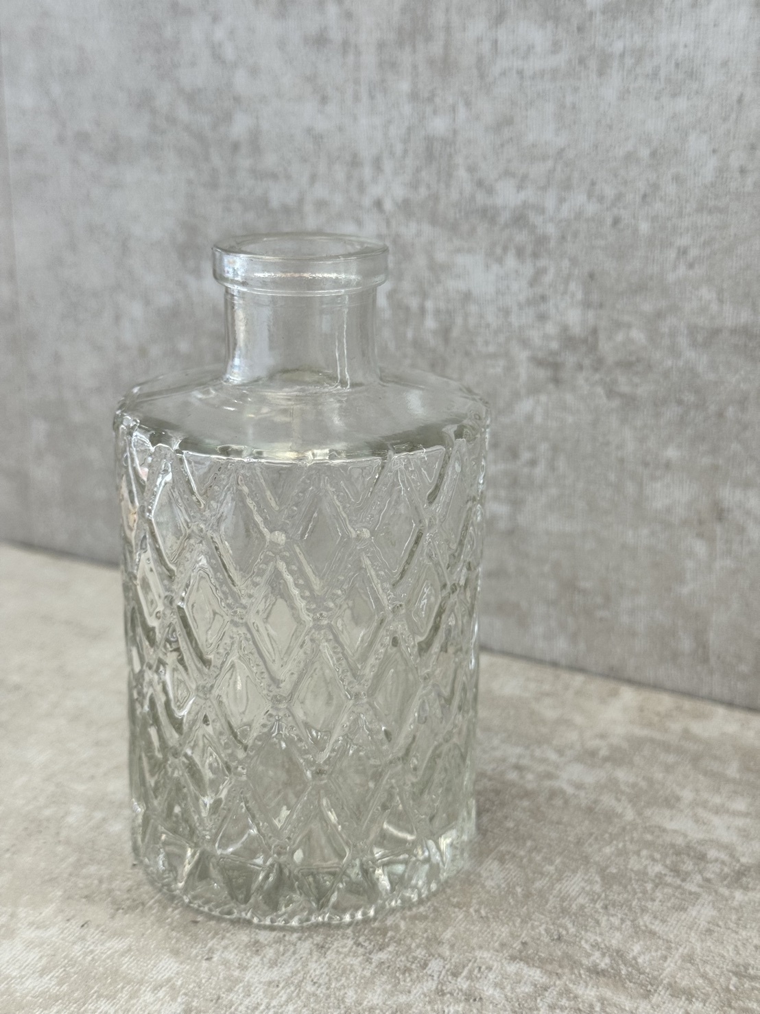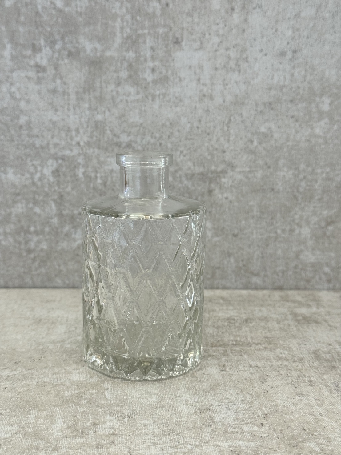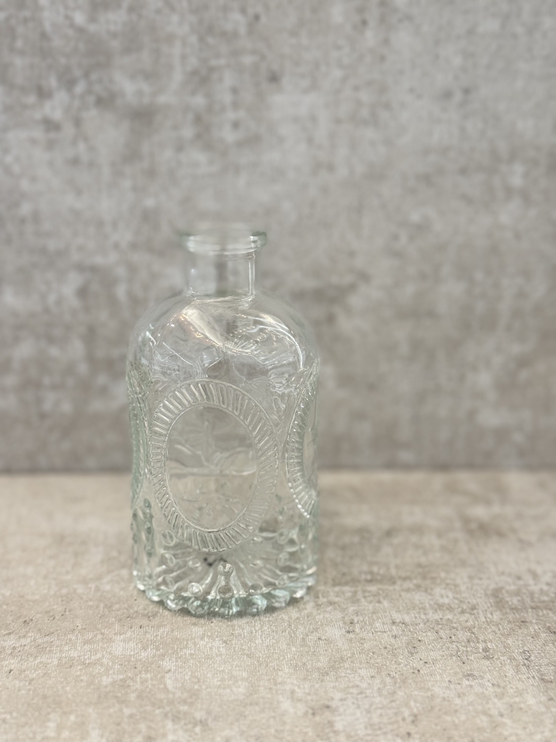 透亮的玻璃瓶身,搭配細緻的浮雕紋樣,彷彿凝結了一段復古時光